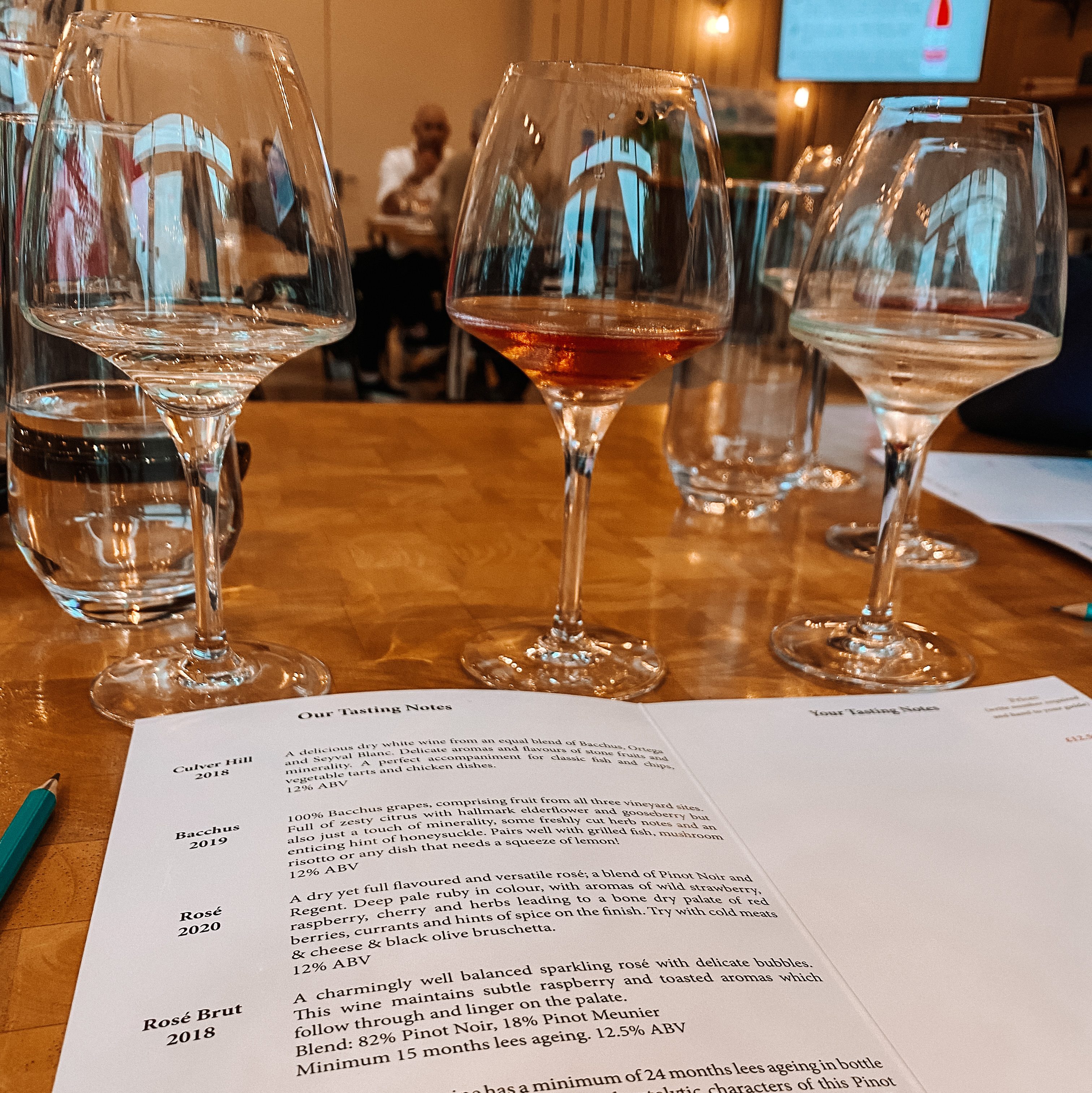 After going back to be seated we were met by a glass of Bacchus and a glass of Rosé. We learned about how the wine was made and the notes of which the glass portrays as well as what to pair it with. The Bacchus wine was full of zesty, citrus flavours with a hint of elderflower and honeysuckle. The Rosé was a blend of Pinot Noir and Regent which was dry but full in flavour with aromas of berries and cherry which is perfect with cold meat and cheese. After devouring these two glasses when then moved on to the sparkling wines. The first was a Rosé Brut which is delicate and has a subtle note of raspberry which lingers on the palate. Then my second favourite of the night was the Reserve Cuvée which has a minimum of 24 months lees aging in the bottle which expresses ripe red fruit and apple.